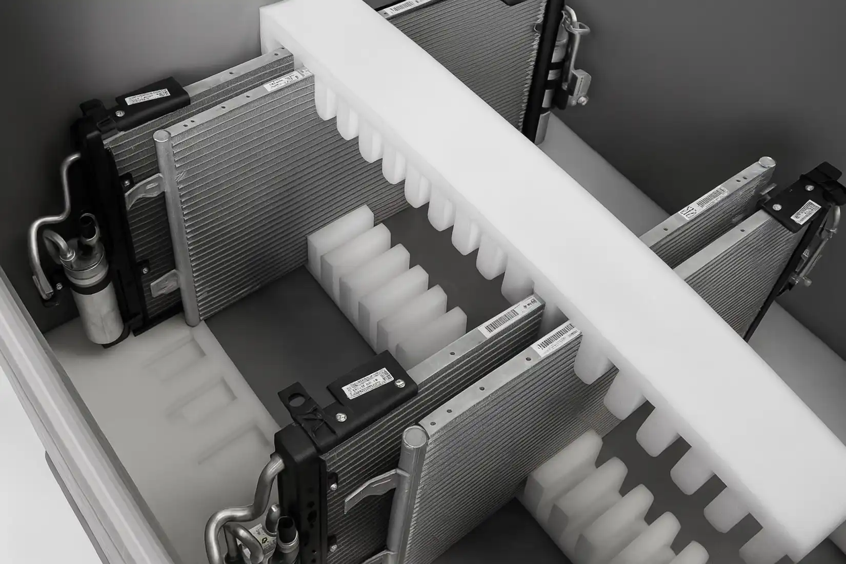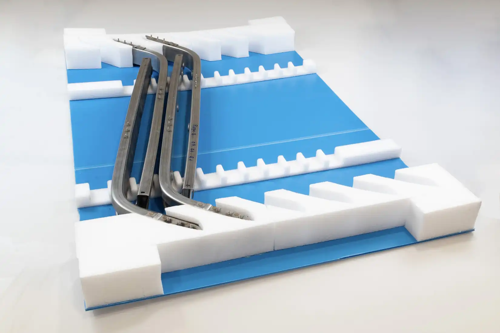 Normalmente la logística de elementos metálicos entre la industria auxiliar del automóvil y la cadena de montaje, requerirá contenedores pesados a los que aportamos los peines o cremalleras de alta resistencia y amortiguación.