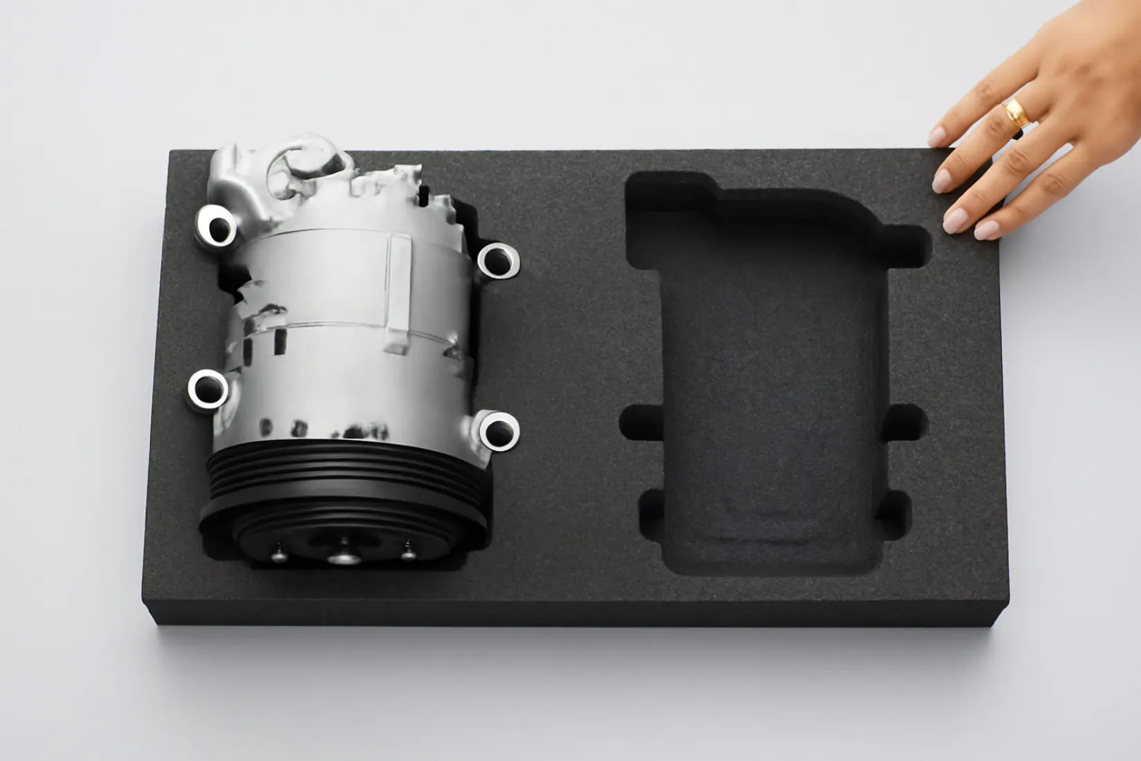 En Brafim Mecplast empleamos espumas de polietileno no reticuladas (EPE) para el embalaje seguro de recambios de automoción de alto valor y gran fragilidad. Este material combina ligereza y resistencia, ofreciendo una excelente absorción de impactos y evitando rayaduras o daños en piezas sensibles. Gracias a su flexibilidad, la espuma se adapta a la forma de cada componente, asegurando una protección a medida durante todo el transporte y almacenamiento. Con distintas densidades y grosores disponibles, nuestras soluciones en EPE proporcionan seguridad, fiabilidad y tranquilidad al enviar piezas críticas para el sector automotriz.