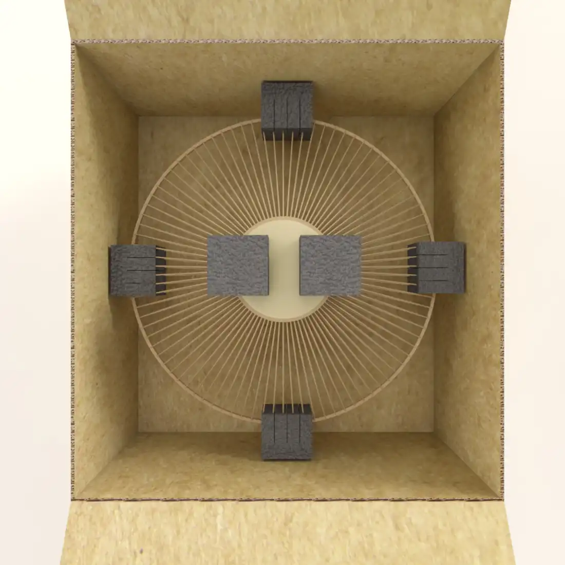 Nuestra capacidad de incorporar múltiples materiales al embalaje nos permite encontrar el producto mas adecuado en función de la tipología de la lámpara. Dependerá de su fragilidad, que varía según si es led o no, si lleva cristal o no, la distribución de pesos y formas, etc. el 100% de las veces irá con caja de cartón exterior, un elemento que aprovecharemos para sacarle el máximo poder absorbente de impactos.