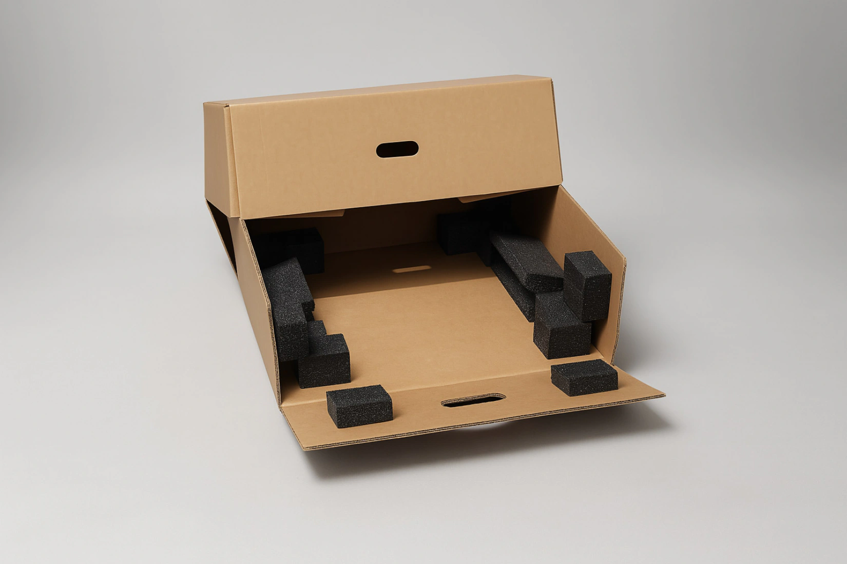 Sus valores en multiimpacto y resistencia al impacto (30% en ambos casos) son más bajos porque, comparado con las otras soluciones, está menos orientado a absorber golpes fuertes. Sin embargo, esto no significa que no proteja: la estructura troquelada permite fijar cada elemento, manteniendo la lámpara o luminaria estable, organizada y bien posicionada durante el transporte.