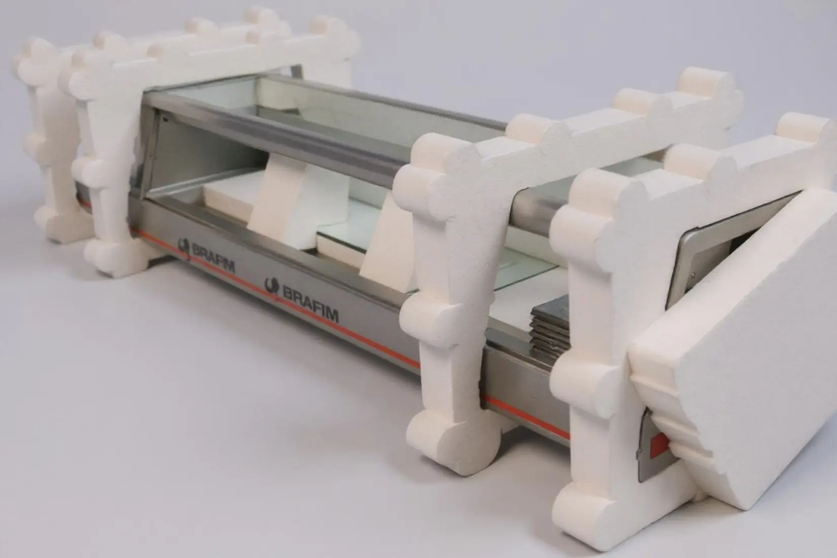 En Brafim Mecplast utilizamos poliestireno expandido (EPS) para proteger maquinaria sensible de la industria hotelera, como vitrinas refrigeradas con componentes electrónicos, motores y vidrio. El EPS ofrece una excelente capacidad de amortiguación y, a diferencia de otros sistemas, puede fabricarse sin necesidad de moldes ni utillajes, lo que permite una respuesta más rápida y flexible en series cortas o proyectos urgentes. Su ligereza, facilidad de diseño y buena resistencia lo convierten en una opción práctica y económica para garantizar la protección de equipos delicados durante el transporte.