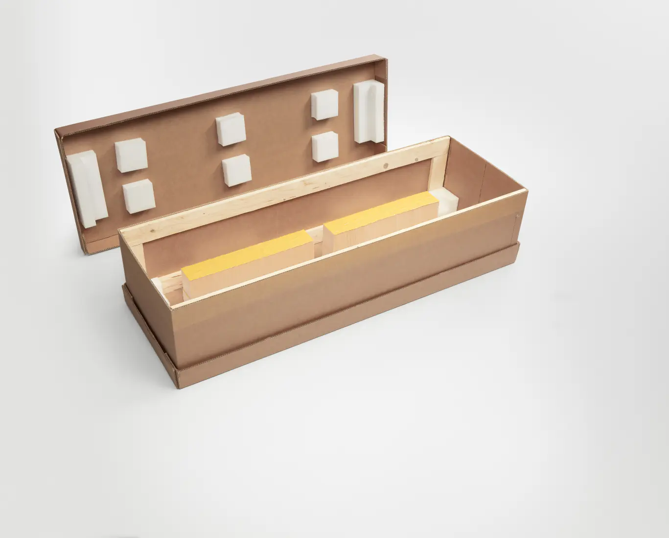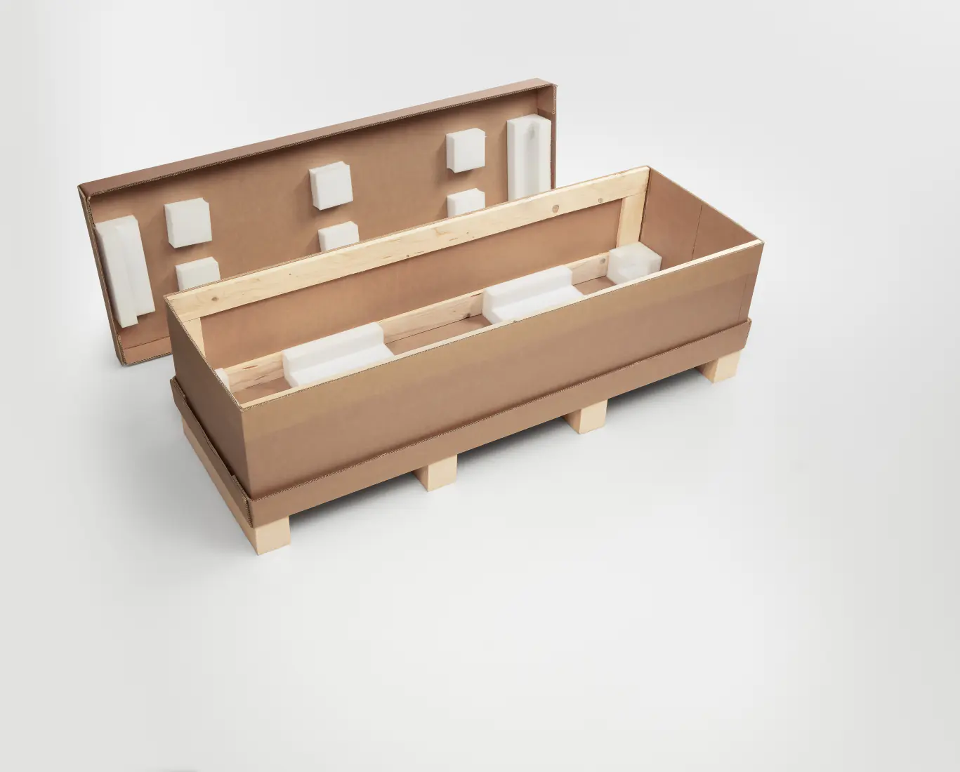 Además, su comportamiento ambiental y económico es notablemente alto (90% en sostenibilidad, coste y reciclabilidad), lo que permite combinar protección avanzada con eficiencia en costes y una buena imagen medioambiental. Por ello, esta solución es ideal para vitrinas pesadas, delicadas o con alto valor añadido, donde la prioridad es mantener la integridad del equipo durante todo el transporte.