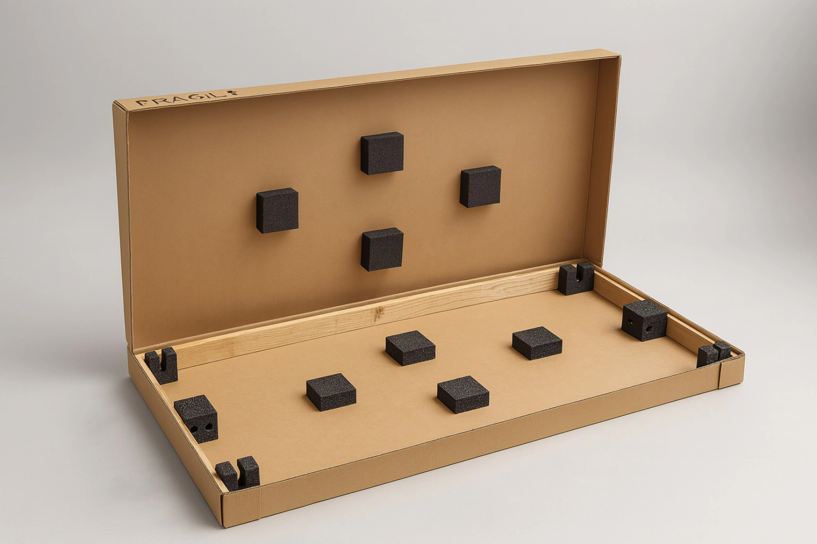 En Brafim Mecplast protegemos cristales y todo tipo de elementos de vidrio con espumas de polietileno no reticuladas (EPE) ecológicas, fabricadas con hasta un 65% de material reciclado. Aunque no alcanzan la resistencia estructural de Scudo, estas espumas están diseñadas para resistir múltiples impactos consecutivos, comportándose como si el vidrio estuviera protegido dentro de una pelota de fútbol. El diseño se adapta siempre a las necesidades logísticas del cliente: no es lo mismo un envío en palets industriales que un embalaje para e-commerce, donde la exposición a golpes y vibraciones es mayor. Una solución que combina protección eficaz, sostenibilidad y flexibilidad.